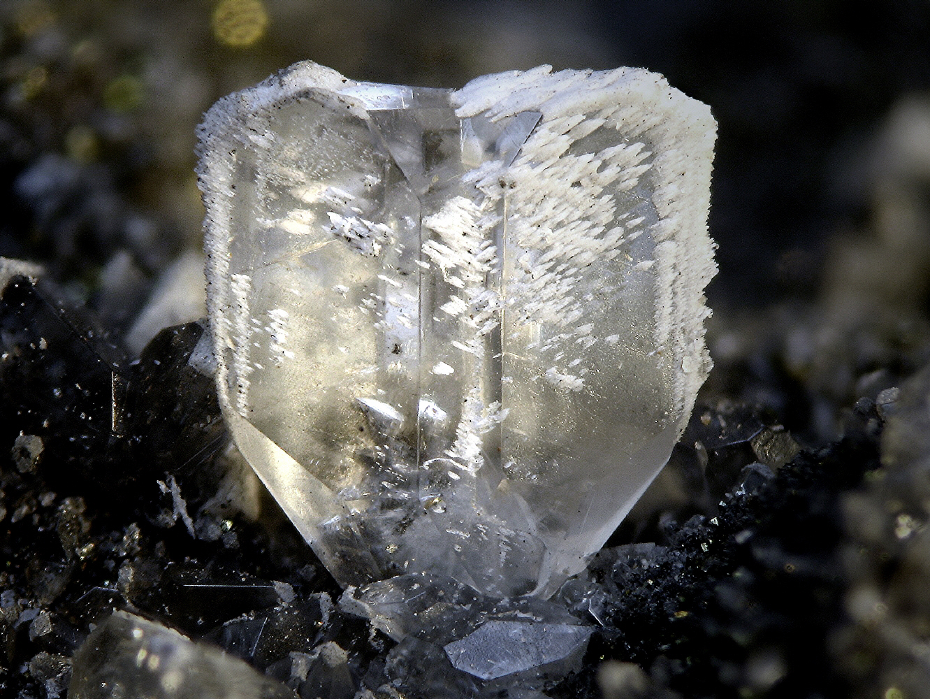 Baryte on Calcite. Ave-et-Auffe, Belgium. FOV 0,8cm